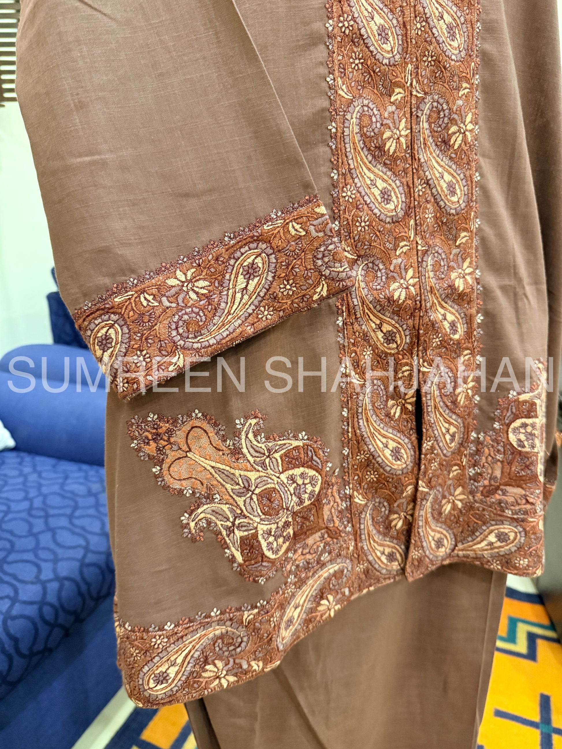 Cinnamon Kashmiri Thread Work Shirt & Trouser